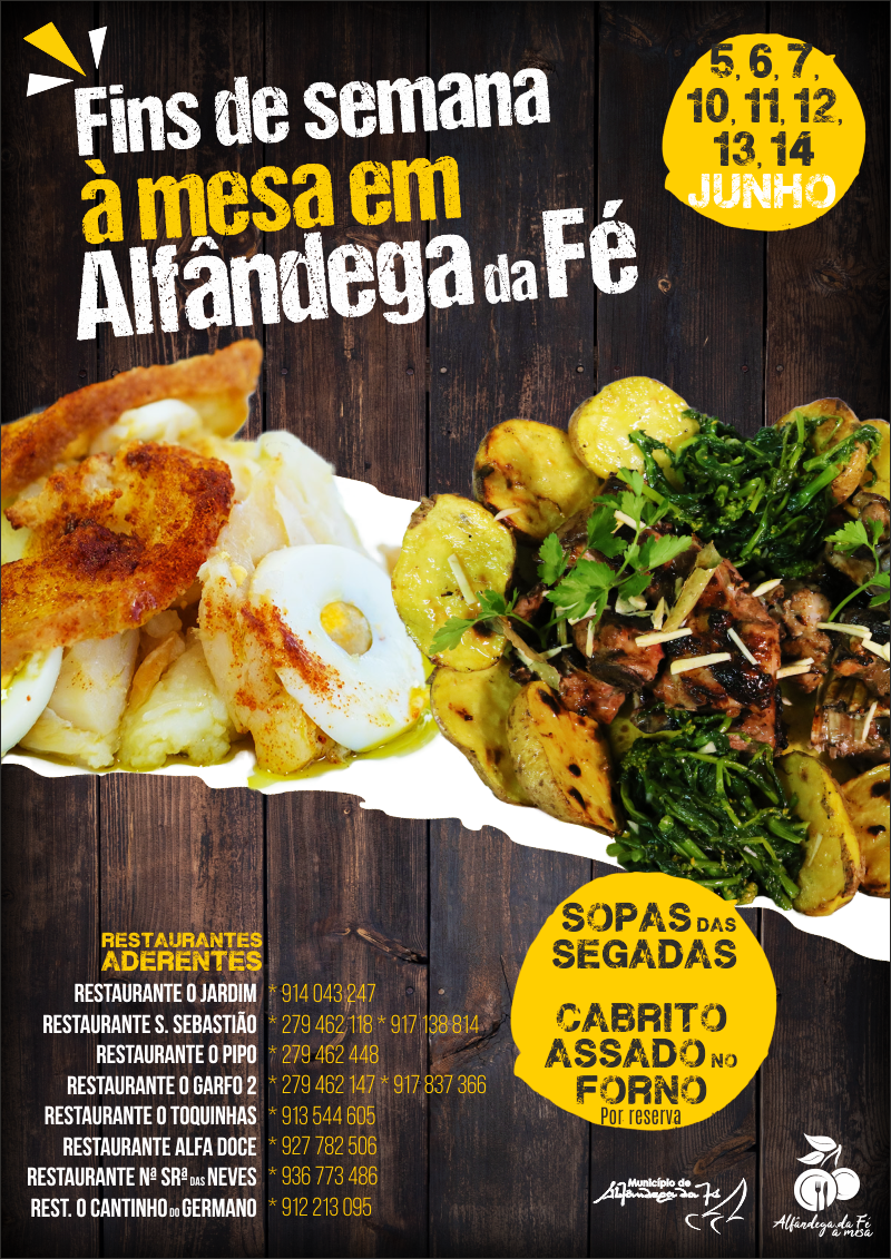 Só disponível por marcação, já que a oferta é limitada e exclusiva, os Fins de Semana à Mesa em Alfândega da Fé decorrem nos dias 5, 6 e 7 de junho e nos dias 10, 11, 12, 13 e 14 de junho.
