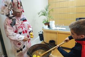 Por entre estantes e livros, num cenário de imensa sabedoria imerso em quase escuridão, negro como se de uma noite sem lua se tratasse, só com uns pequenos apontamentos de luz provenientes das velas que jaziam pelo chão, a soturna atmosfera só acabaria por viralizar com o zeloso contributo dos “artistas de rua” que, trajados a preceito, iam por aqui e por ali assustando as "alminhas" ou mendigando por doces…