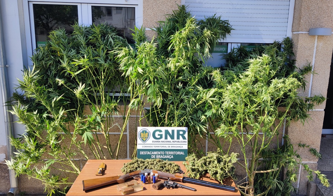 Na sua residência, os militares apreenderam 493 doses de canábis, três plantas de canábis, uma caçadeira, sete cartuchos, um revólver, 175 munições e uma arma branca.