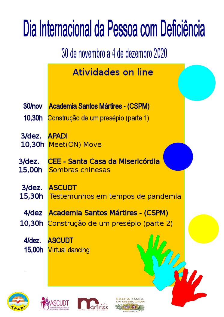 Contudo, a Associação de Pais e Amigos do Diminuído Intelectual (APADI), a Associação Sócio - Cultural dos Deficientes De Trás-os-Montes (ASCUDT), o Centro de Educação Especial (CEE) da Santa Casa da Misericórdia de Bragança (SCMB) e a Academia do Centro Social Paroquial Santos Mártires (CSPSM), todas com resposta social na área da deficiência, decidiram levar, em conjunto, a comemoração do 3 de dezembro para o digital.